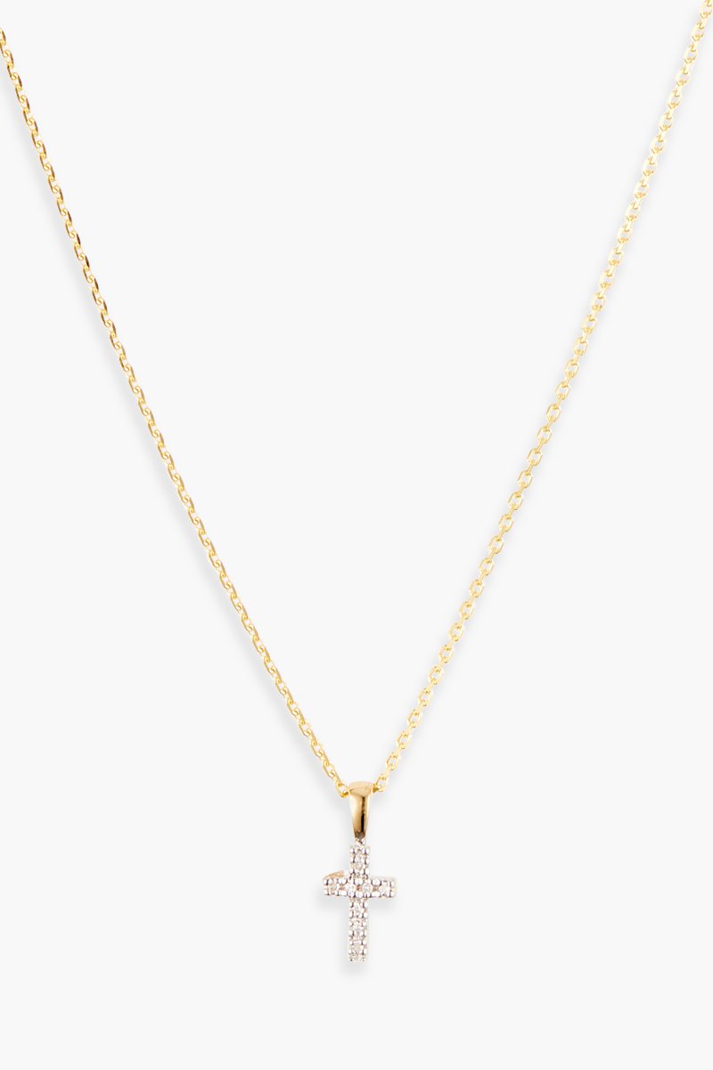 Pendentif Mini croix - Or jaune et diamants