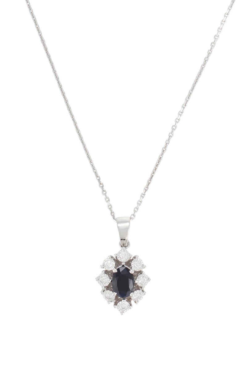 Pendentif Théa - Or blanc, diamants et saphir
