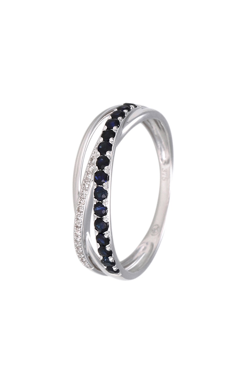 Matière : or blanc 375/1000, diamants 0,048 carat/16 et saphirs 0,43 carat/15