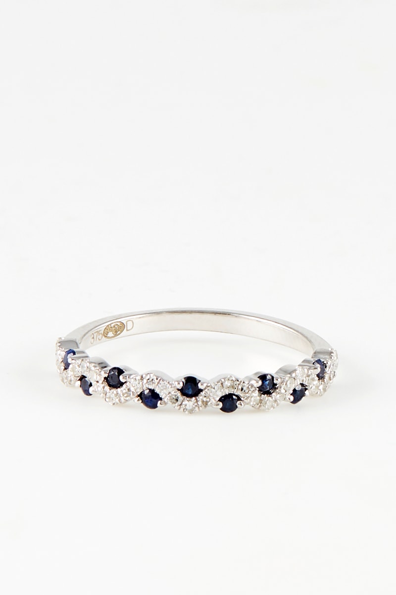 Matière : or blanc 375/1000, diamants 0,165 carat/33 et saphirs 0,198 carat/11