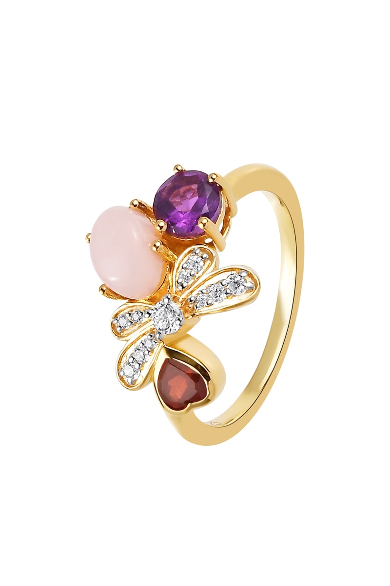 Bague - Argent plaqué or jaune, opale, améthyste africaine et grenat