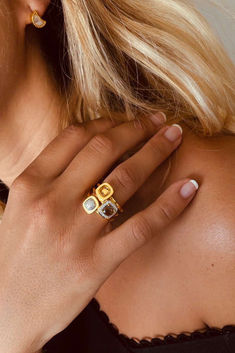 Bague - Argent plaqué or jaune et quartz