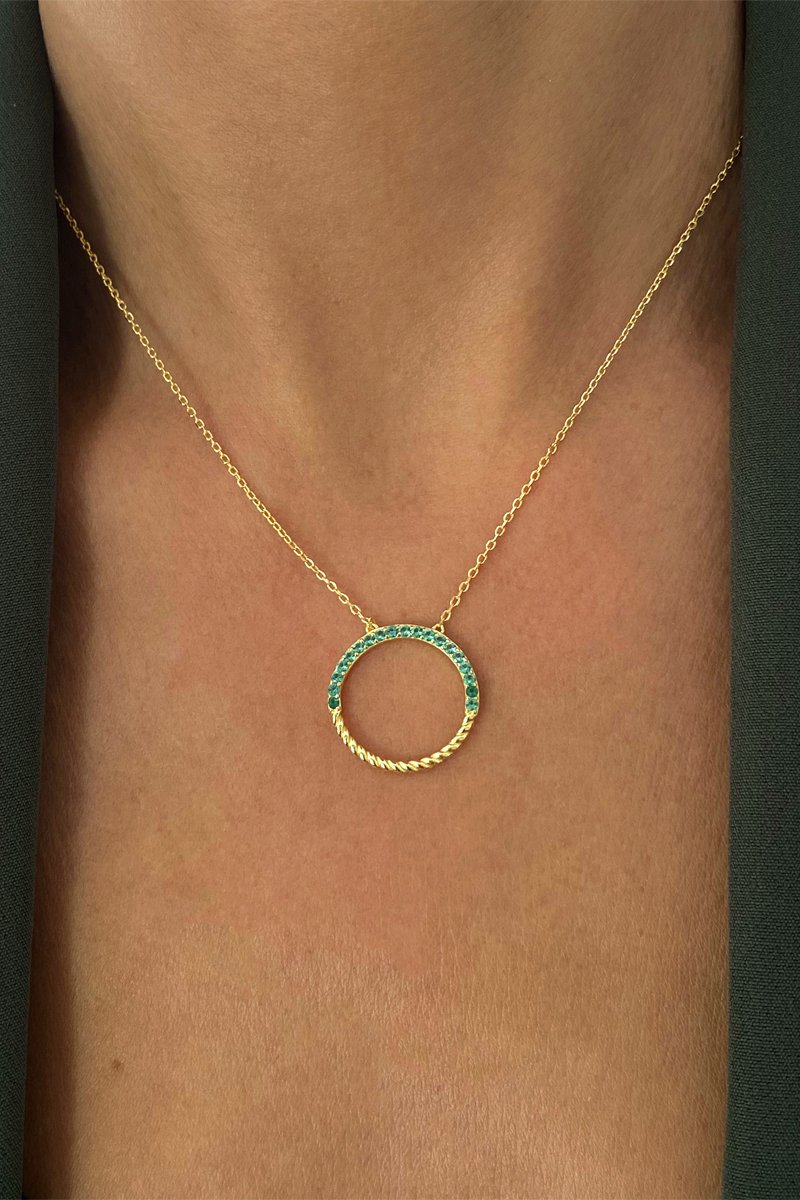 Collier en argent doré à l'or jaune serti d'émeraudes synthétiques.