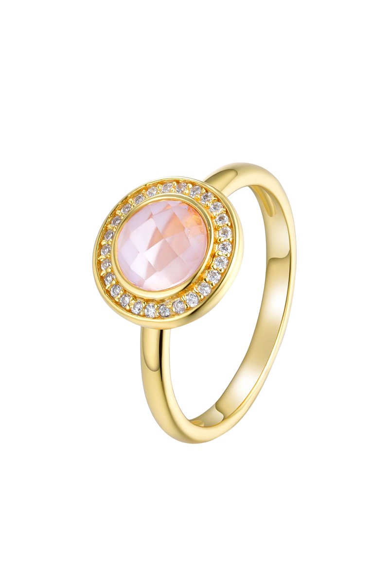 Bague en argent doré à l'or fin jaune sertie d'un quartz rose et d'oxyde de zirconium.