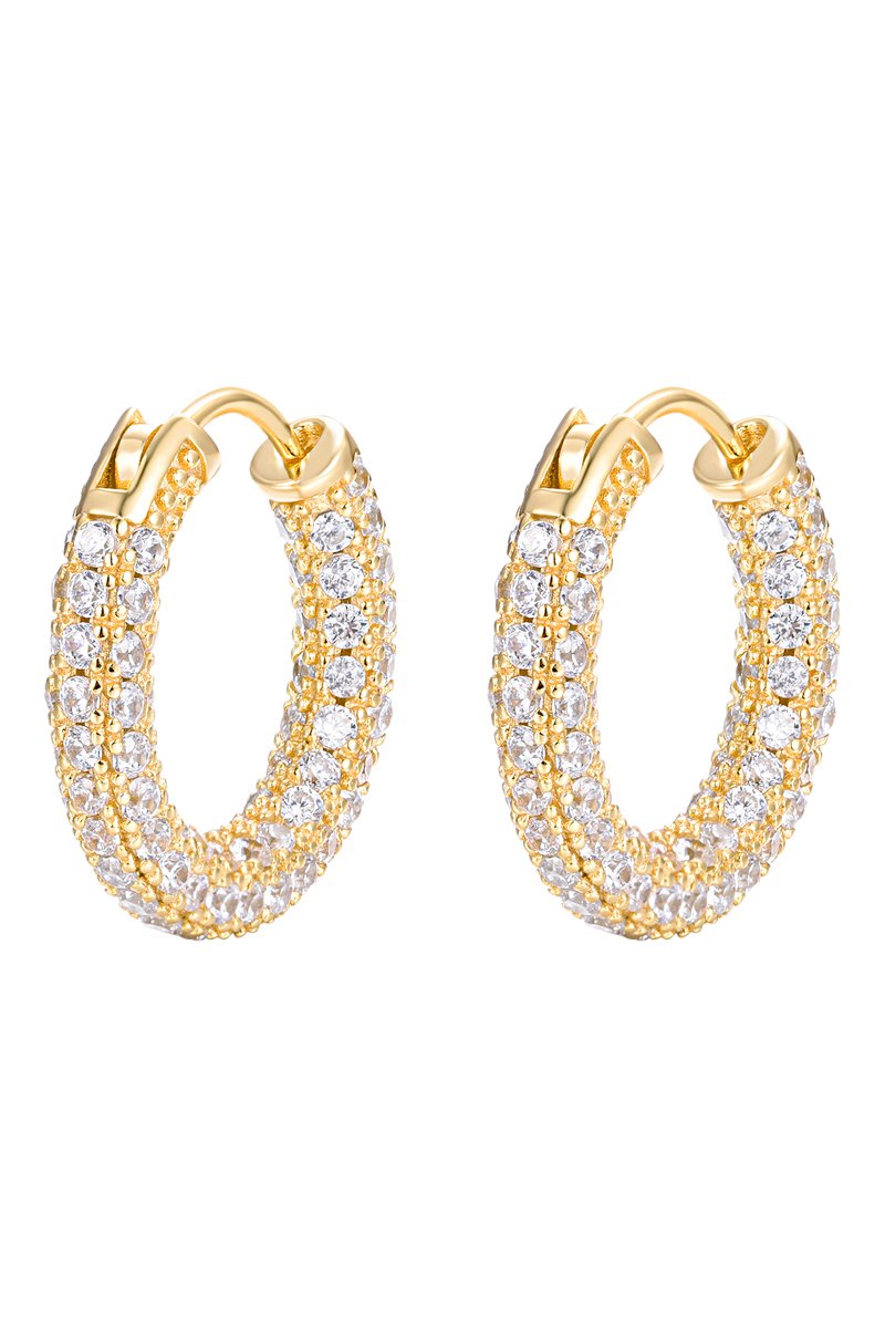 Créoles en argent plaqué or jaune serties de zirconiums.