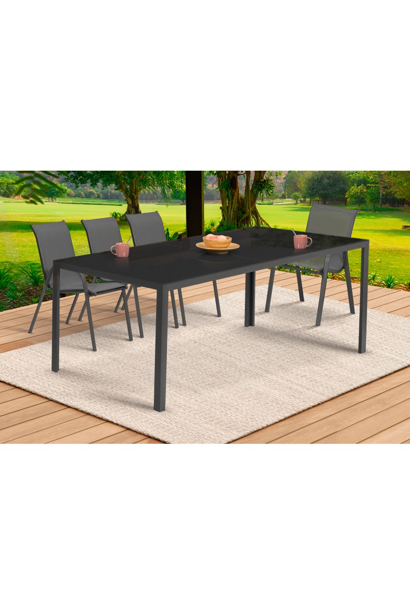 Table de jardin Majorca - Anthracite - Plateau en verre - 190 x 80 x 73 cm