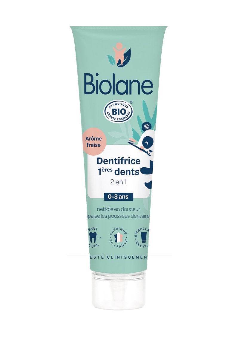 Conseils d'utilisation : appliquer 2 fois par jour une petite quantité de dentifrice sur une brosse à dents adaptée aux premières dents ou directement sur votre doigt. Brosser doucement du haut vers le bas en effectuant des mouvements de massage pour apaiser bébé lors des poussées dentaires.