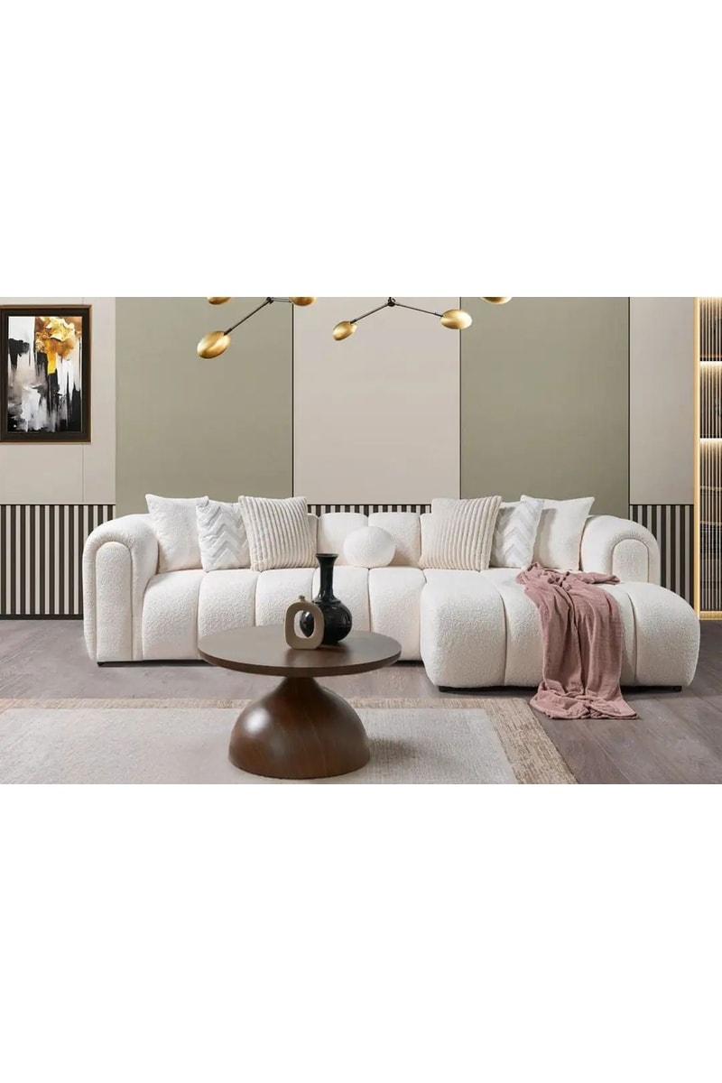 Canapé d'angle droit - Blanc - 4 ou 5 places - En tissu bouclette - 265 x 185 x 95 x 70 cm