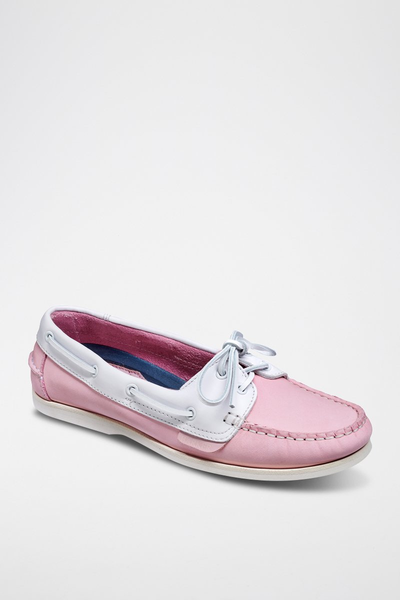 Chaussures bateau en cuir de veau Cleo - Blanc et rose