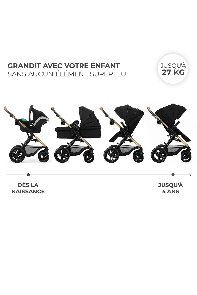 Poussette 3 en 1 Moov 2 XL - Dès la naissance jusqu'à 4 ans - Jusqu'à 22 kg - Noir