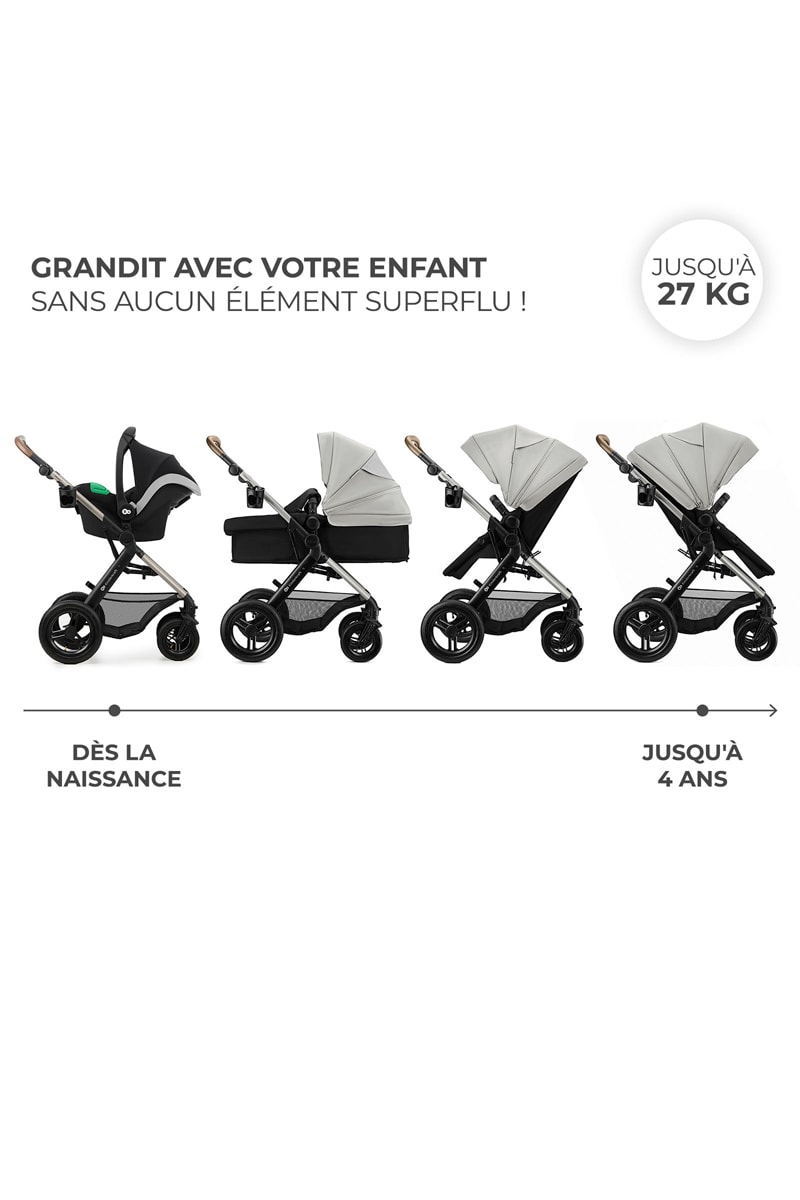 Poussette 3 en 1 Moov 2 XL - Dès la naissance jusqu'à 4 ans - Jusqu'à 22 kg - Gris clair