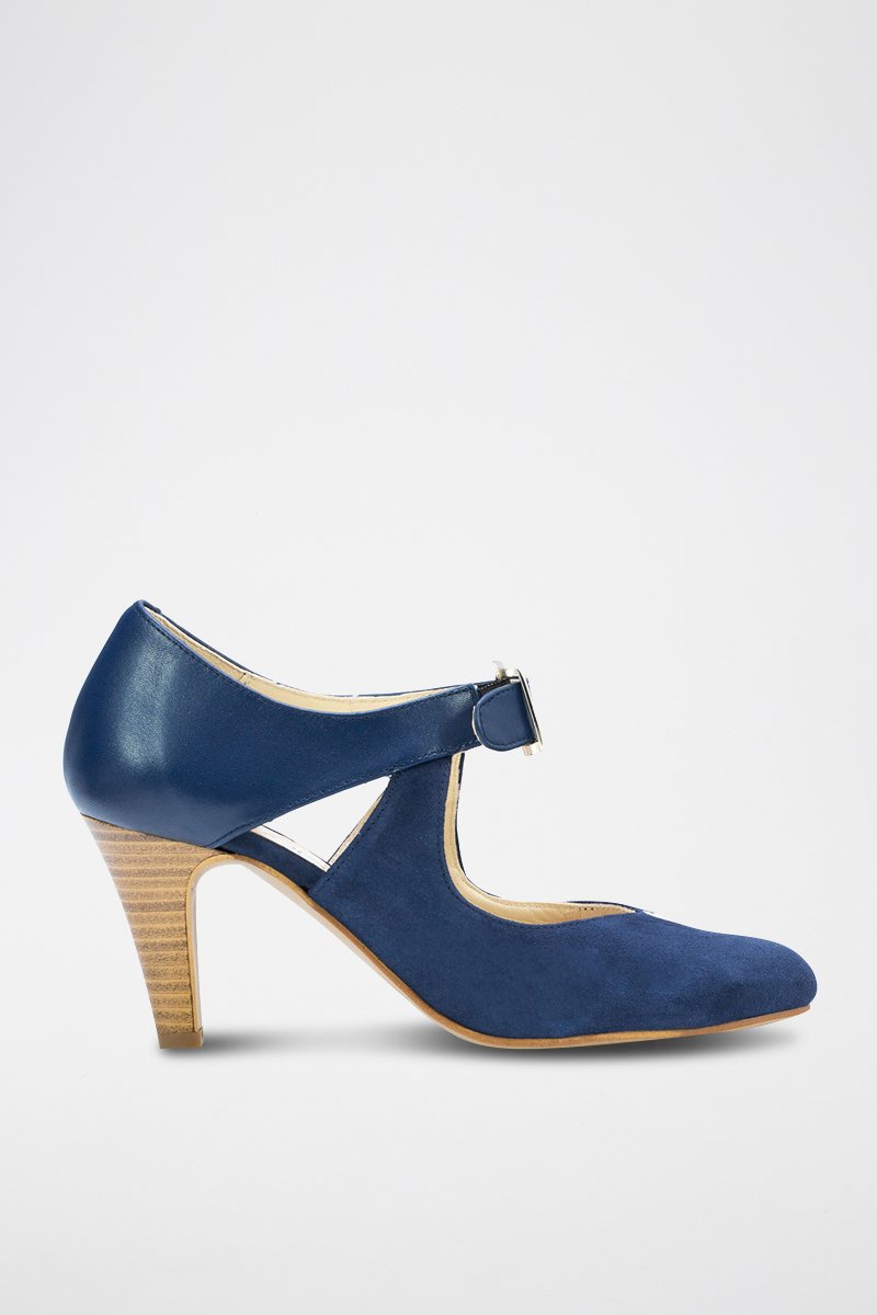 Babies à talons en cuir Nina - Bleu