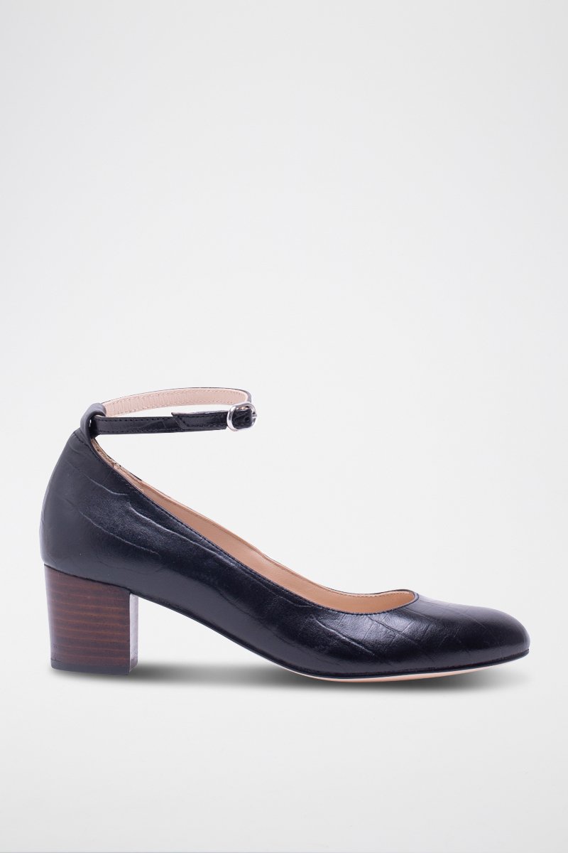 Babies à talons en cuir Valentina - Noir