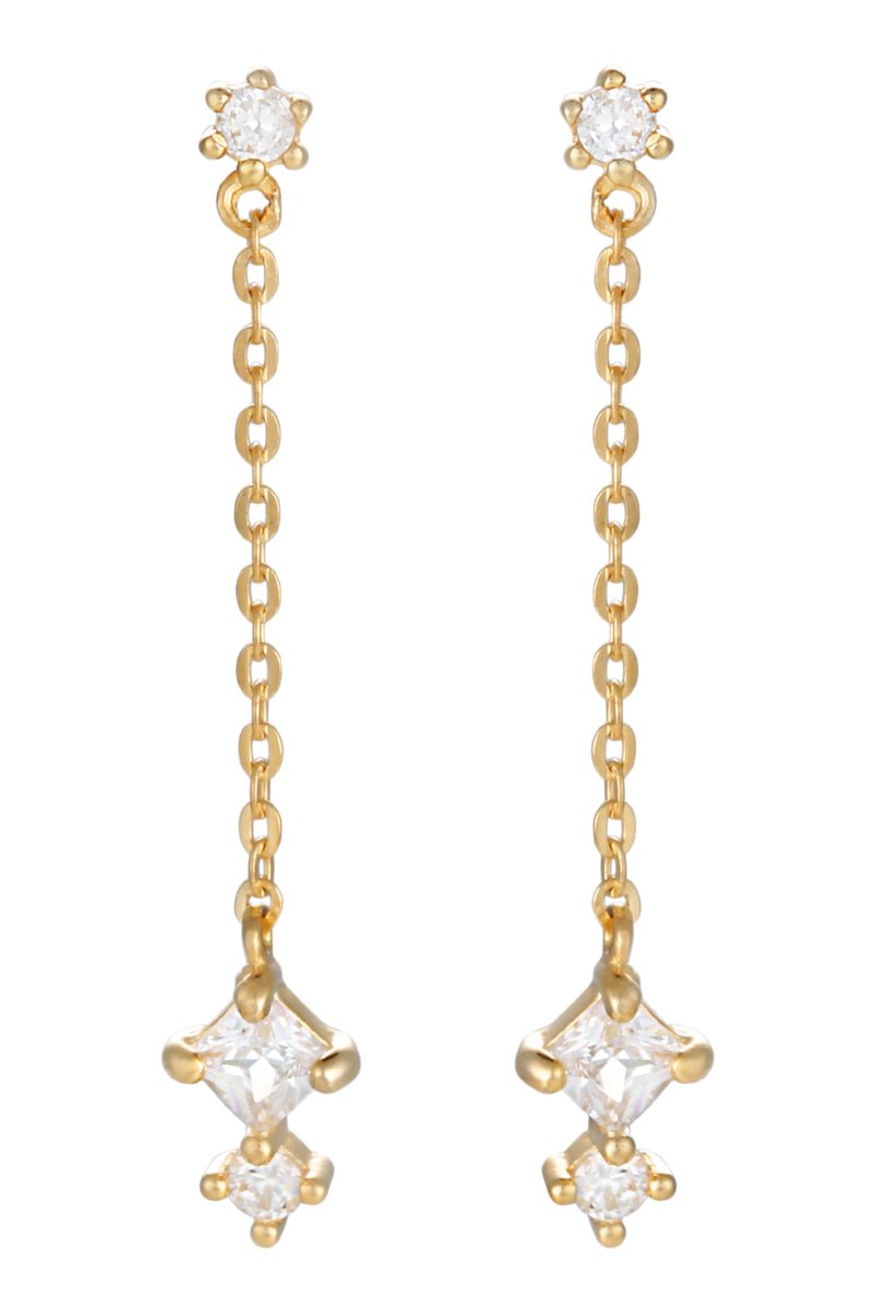 Boucles d'oreilles pendantes en or jaune serties de zirconiums.