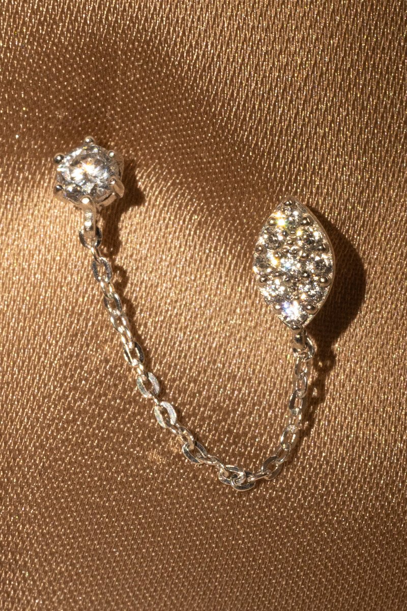 Boucle d'oreille 2 trous en or blanc sertie de zirconiums.