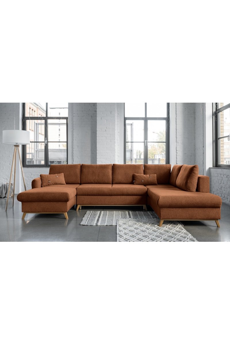 Canapé d’angle droit panoramique convertible Scandic Lagom - Rouge brique - 8 places - En polyester
