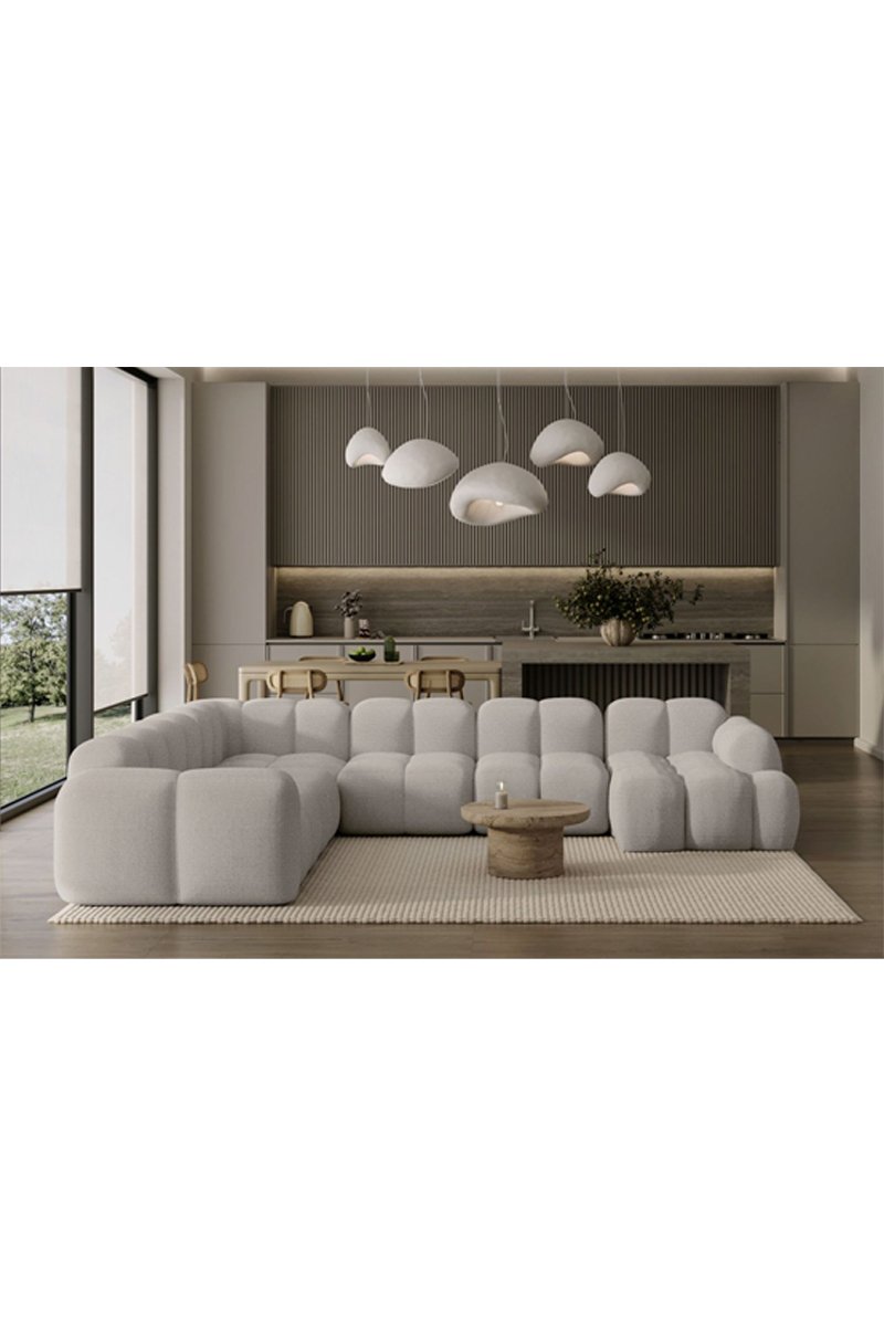 Canapé d’angle gauche panoramique modulaire Cloud - Gris clair - 8 places - En polyester