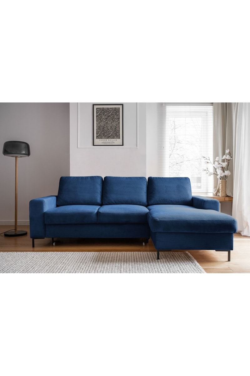 Canapé d'angle droit convertible Lofty Lilly - Bleu - 4 places - En polyester