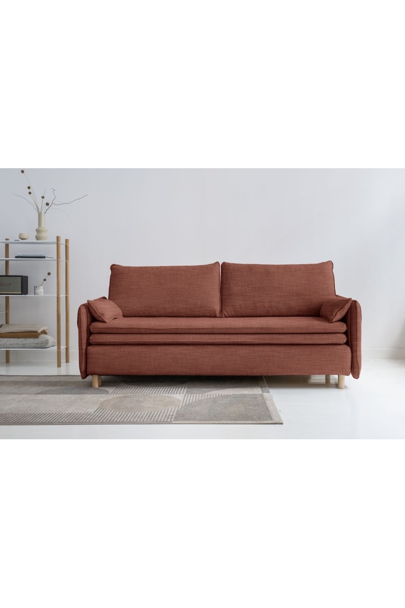 Canapé convertible Simon - Rouille - 3 places - En tissu structuré anti-tâche