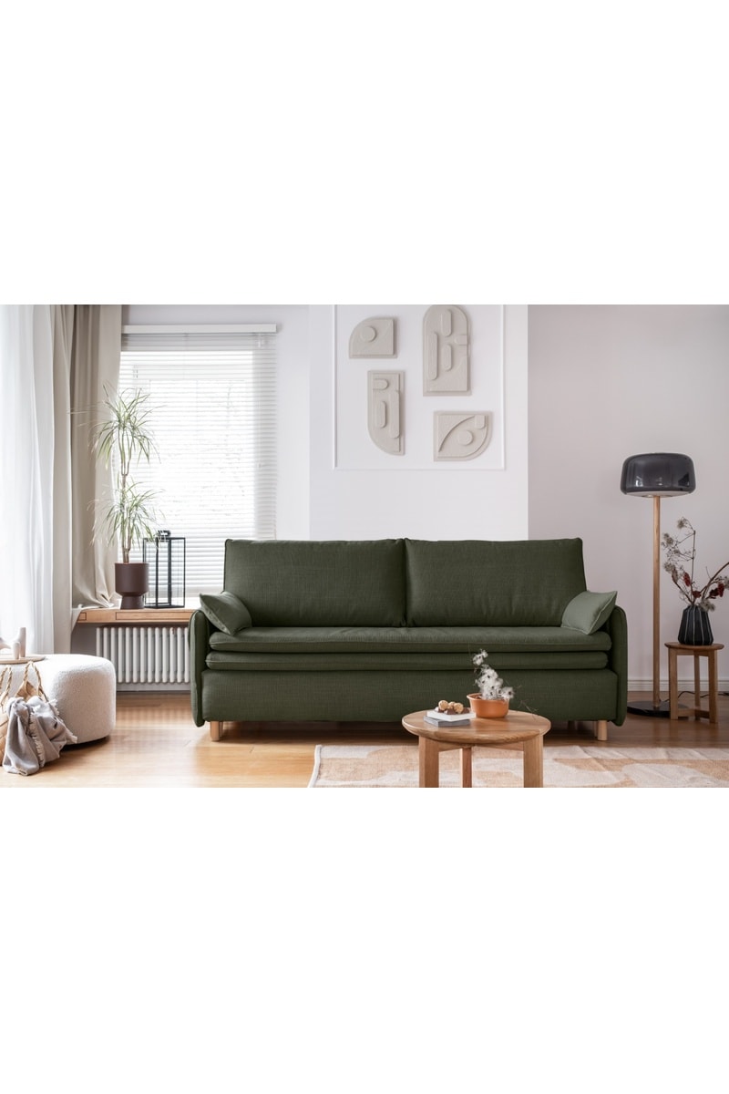 Canapé convertible Simon - Vert - 3 places - En tissu structuré anti-tâche