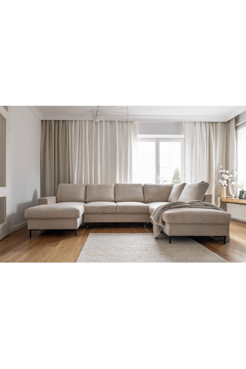 Canapé d'angle droit panoramique convertible - Beige - 8 places - En polyester