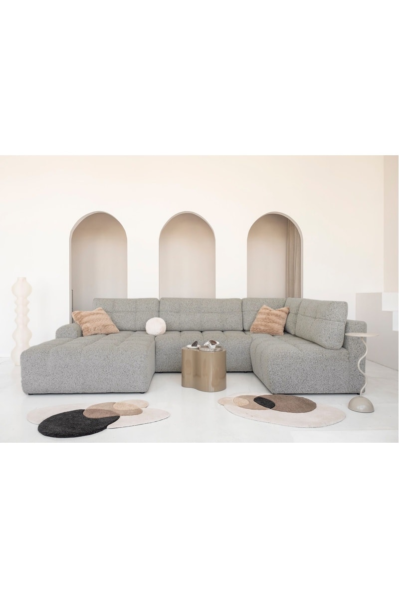 Canapé d'angle gauche panoramique convertible Lulu - Gris - 8 places - En tissu structuré
