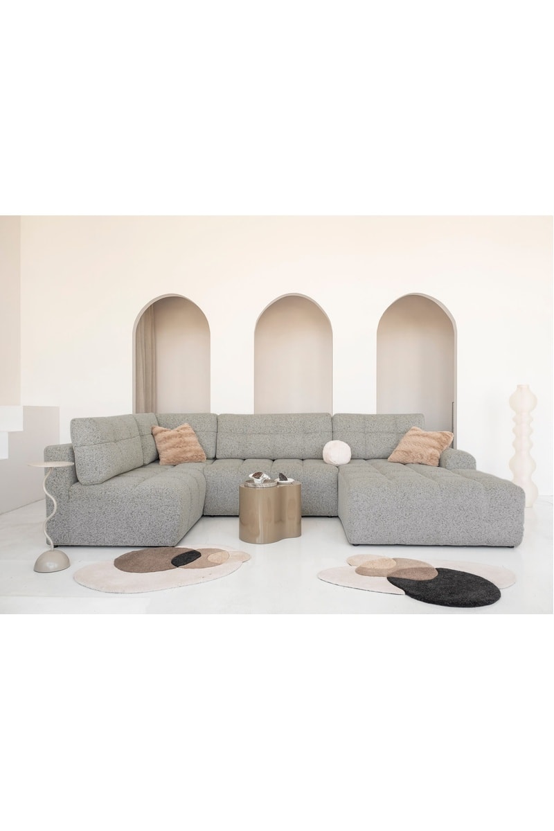 Canapé d'angle droit convertible Lulu - Gris clair - 8 places - En polyester