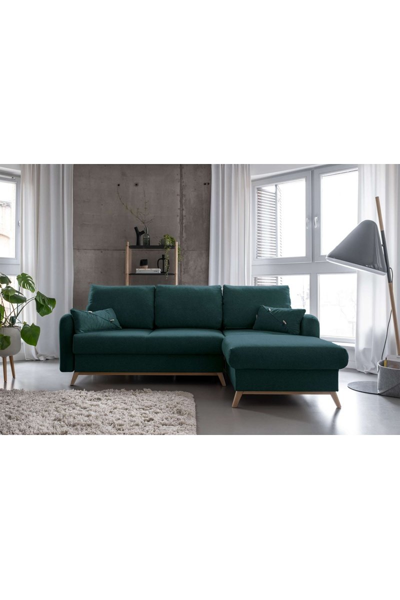 Canapé d’angle droit convertible Scandic Lagom - Turquoise - 4 places - En polyester