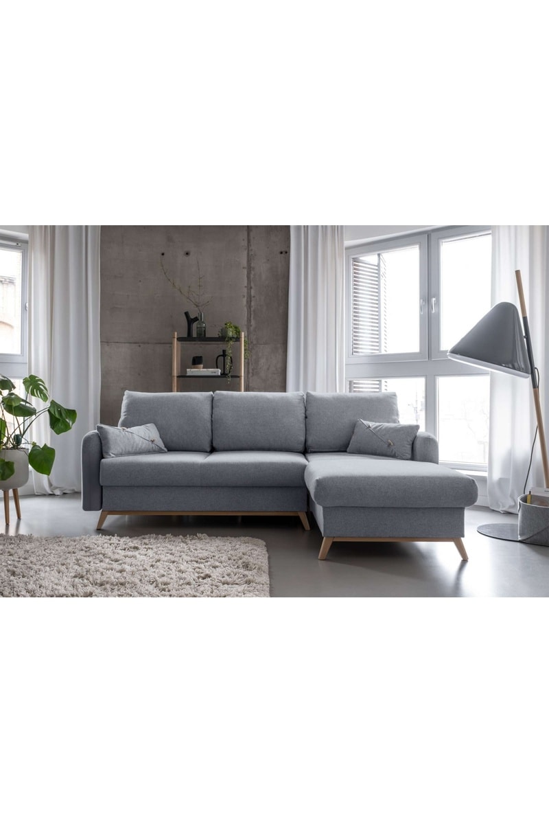 Canapé d'angle droit convertible Scandic Lagom- Gris clair - 4 places - En tissu structuré