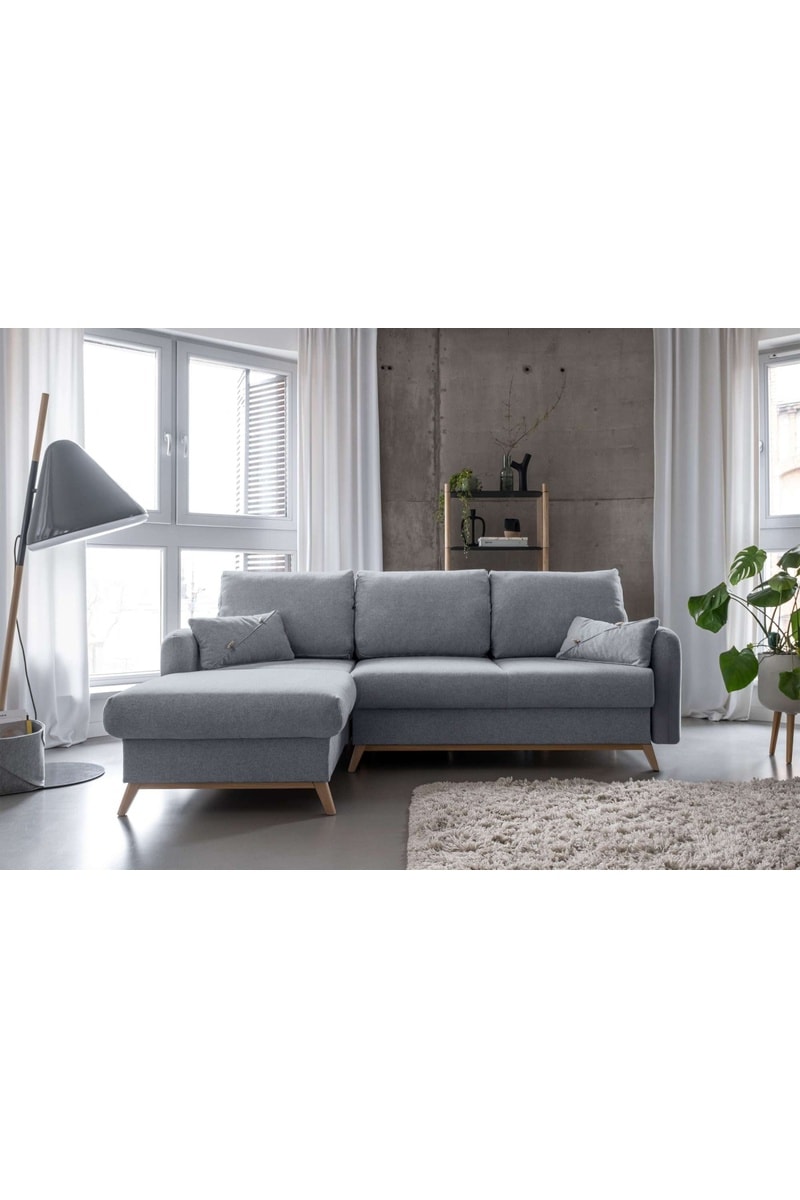 Canapé d'angle gauche convertible Scandic Lagom- Gris clair - 4 places - En tissu structuré