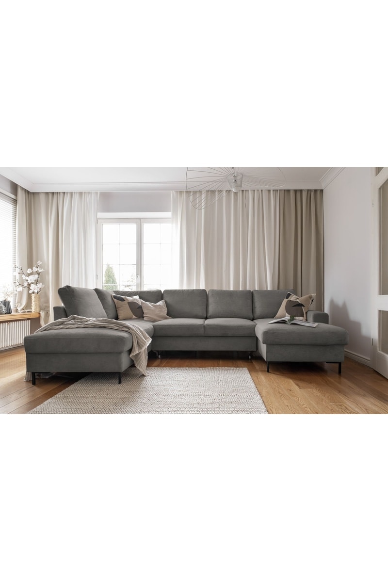 Canapé d'angle gauche panoramique convertible - Gris - 8 places - En polyester