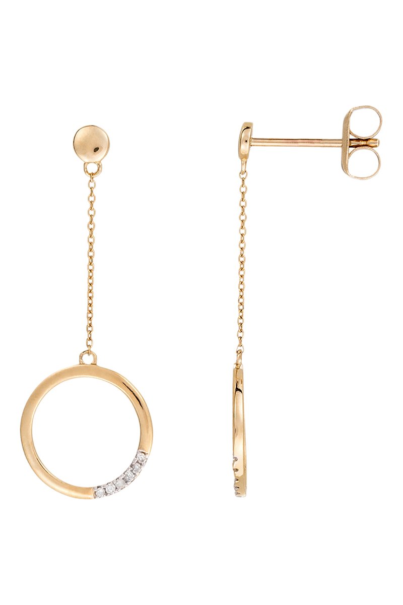 Boucles d'oreilles pendantes en or jaune serties de 6 diamants.