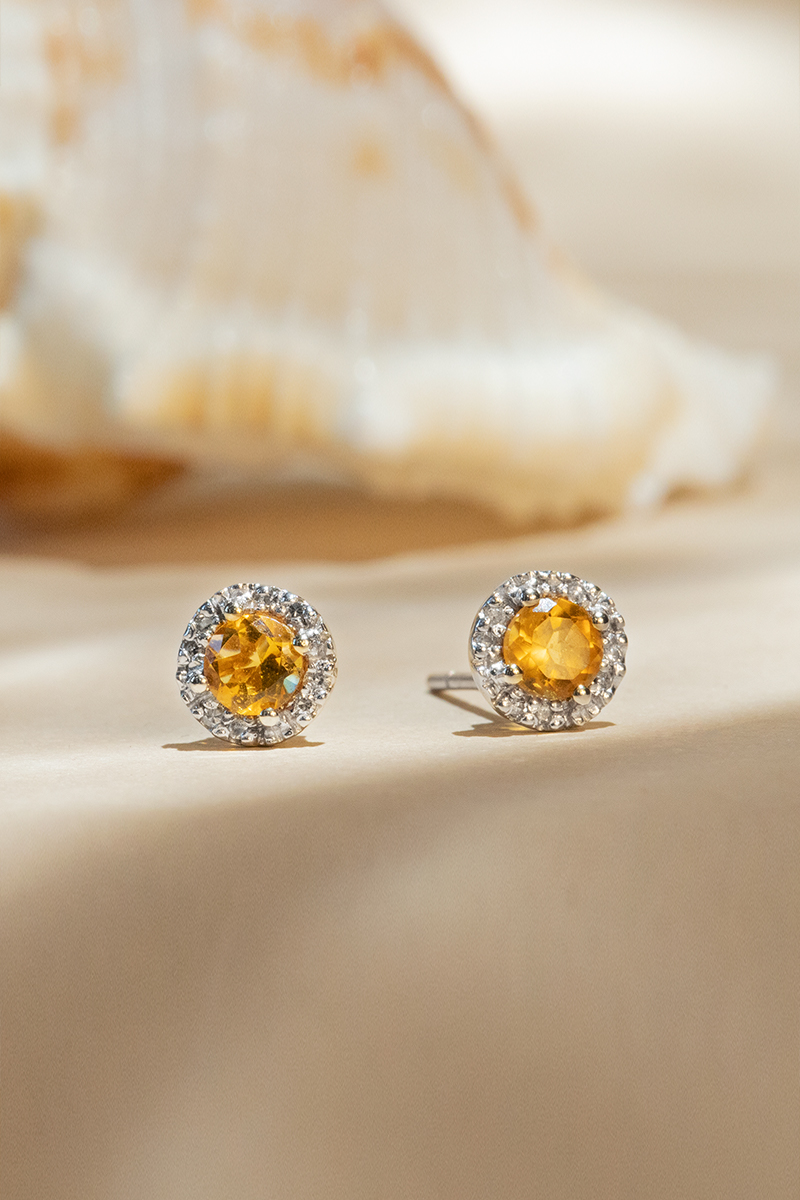 Puces Popi - Or jaune, diamants et citrines
