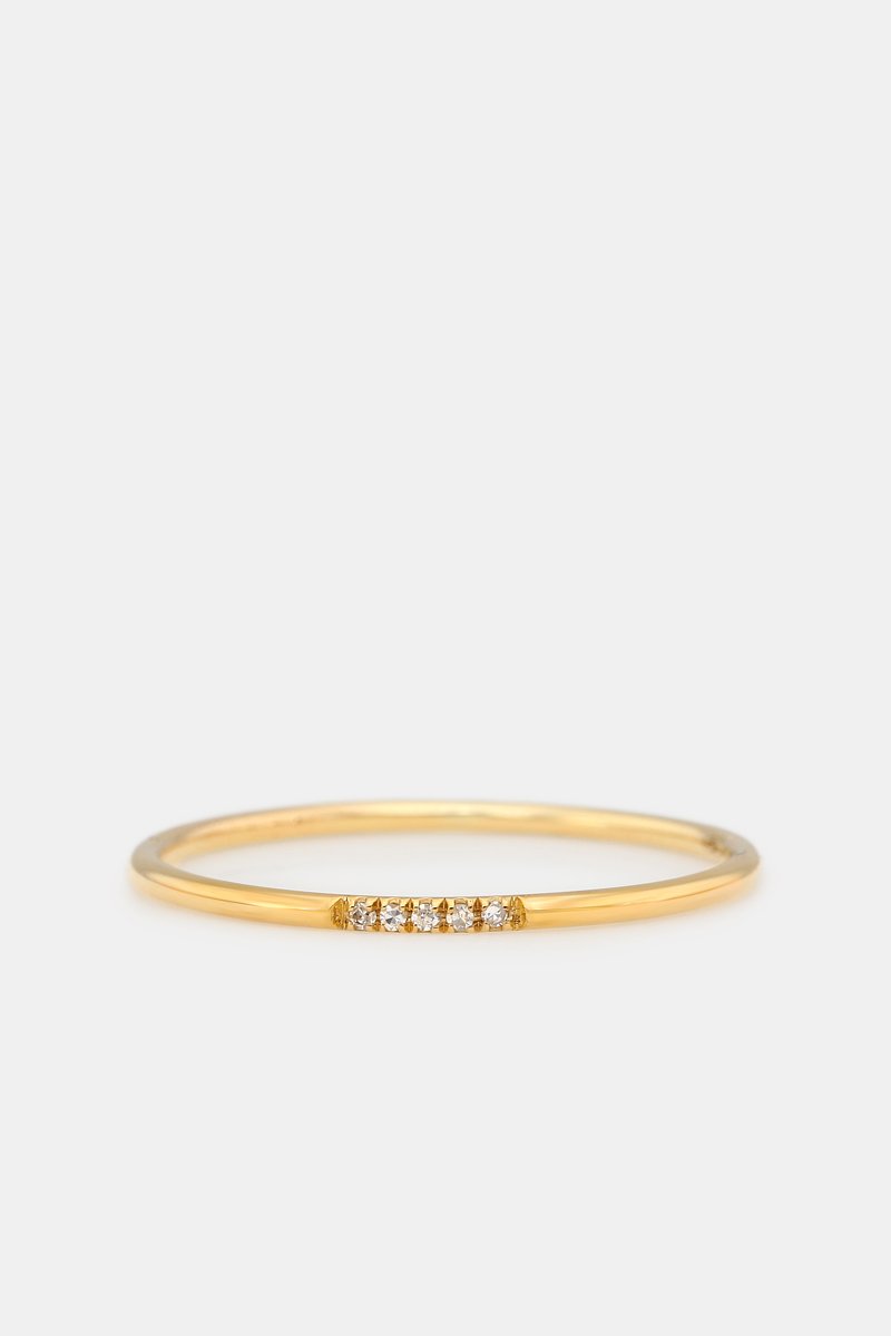 Bague en or jaune sertie de 5 diamants.