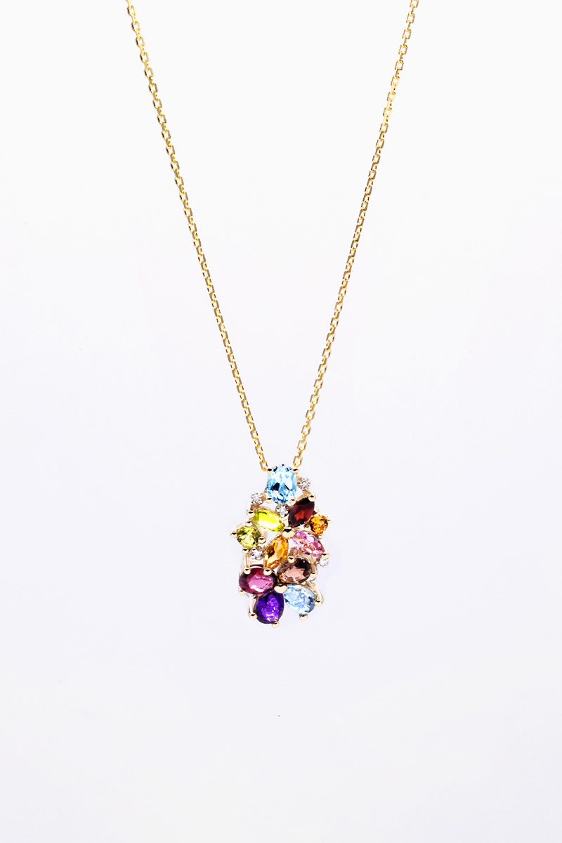 Pendentif Eléa - Or jaune, diamants, topazes, citrines, péridots, grenats, saphir, améthyste et quartz fumé