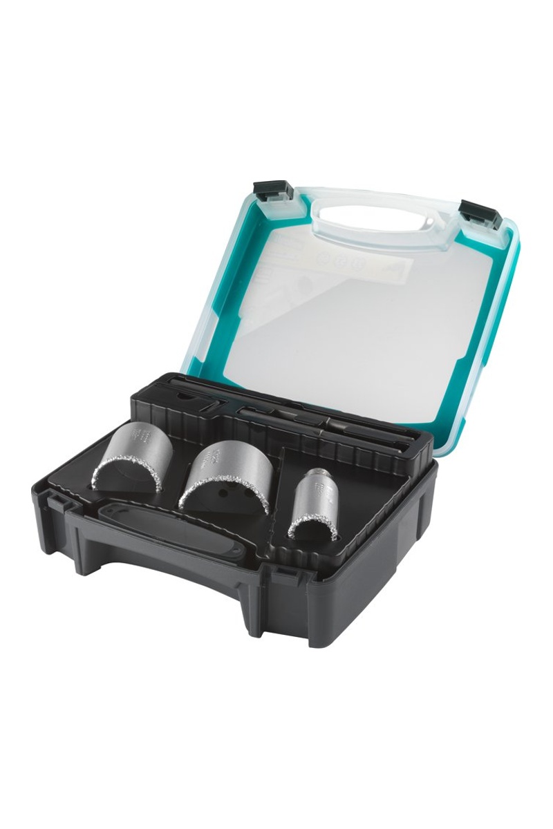 - 3 trépans à pointe en carbure Ø 33, 53, 68 mm