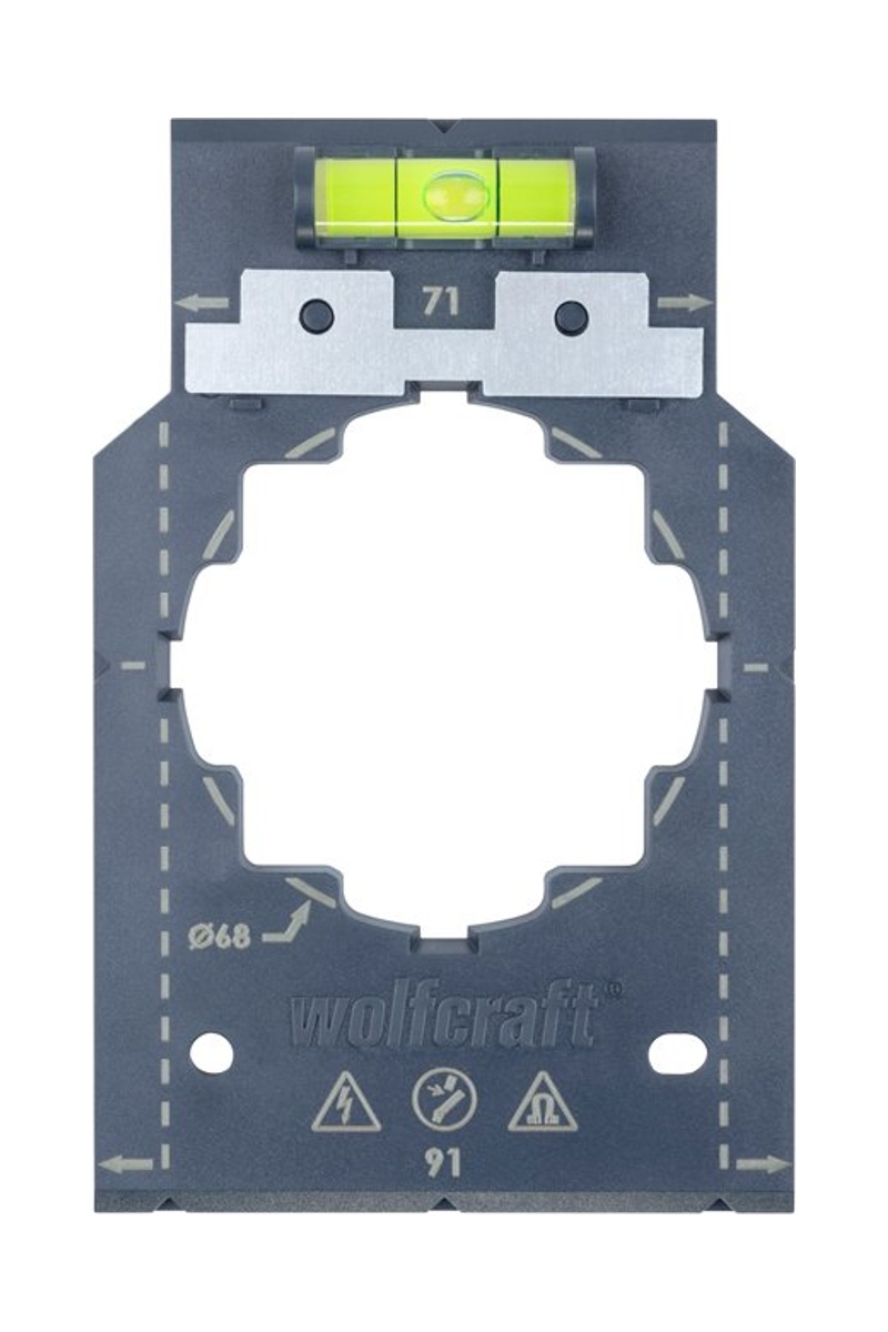 Cotes de 71 mm et repères sur tous les côtés pour reporter facilement les distances correctes entre deux boîtes d’encastrement, utilisable aussi pour l’ajout de nouvelles prises.