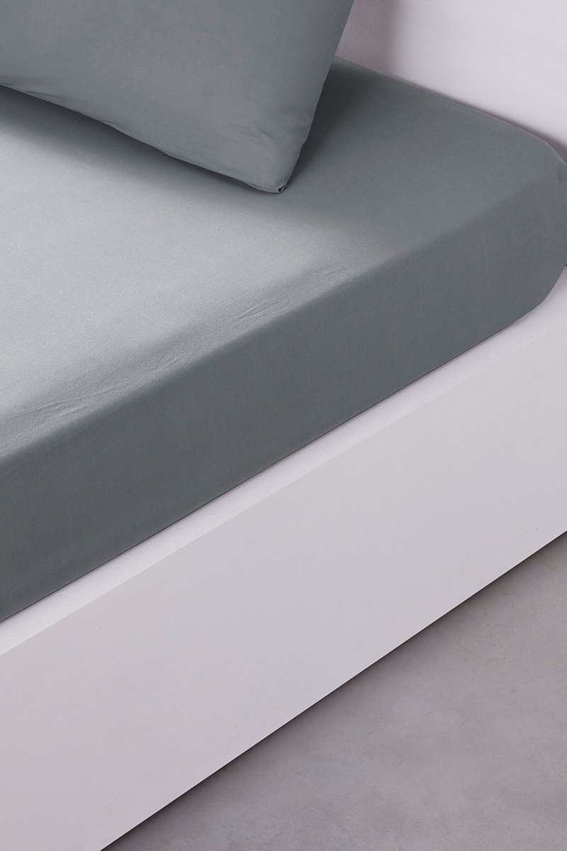 Drap-housse en coton 78 fils/cm² - Acier - Bonnet 30 cm