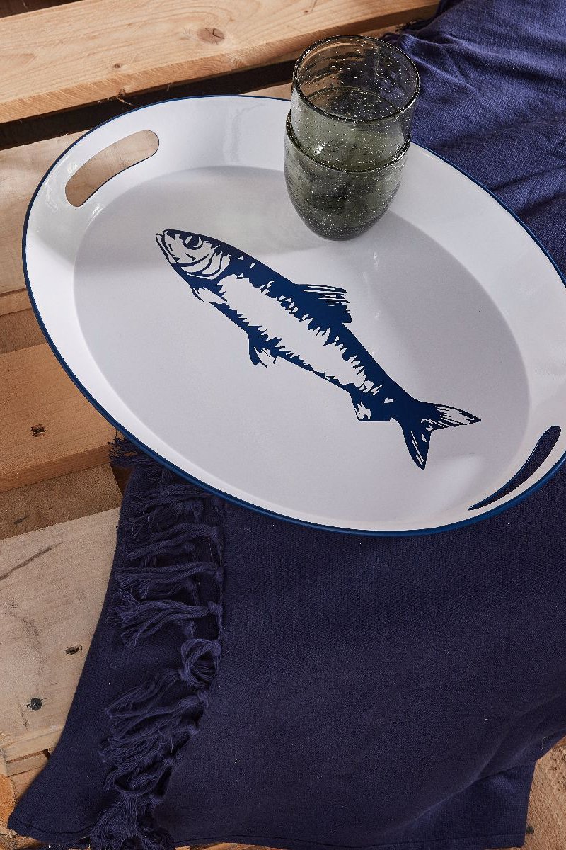 Plateau - Blanc et bleu - 33,3 x 42 x 4 cm