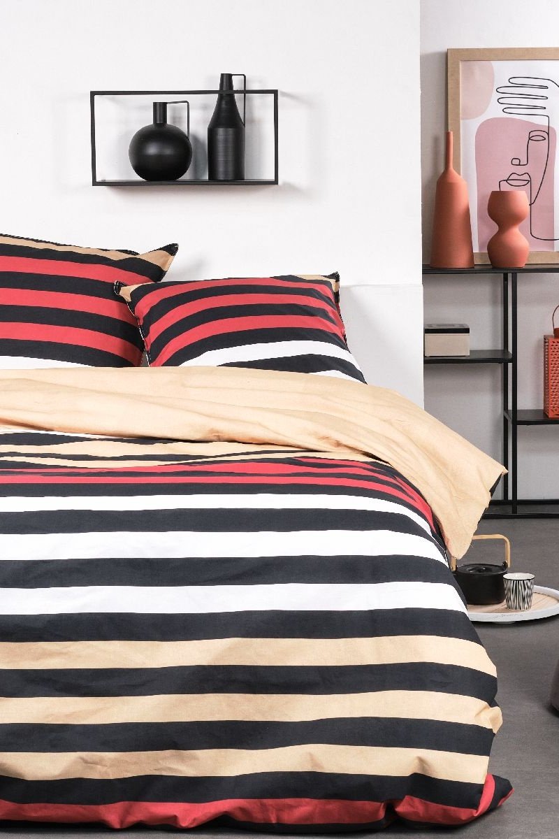 Parure de couette réversible en coton - 57 fils/cm² - Noir, blanc, rouge et jaune