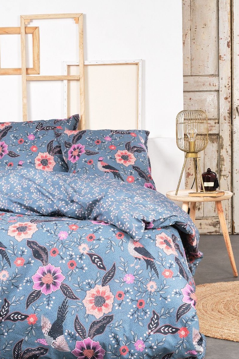 Parure de couette réversible en coton - 57 fils/cm² - Bleu