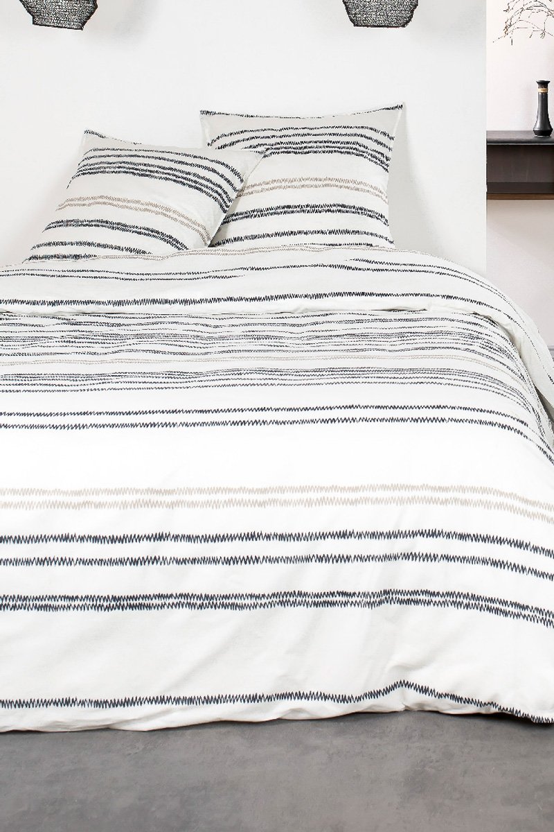 Toutes nos parures de lit pour 2 personnes comportent 2 taies d’oreiller : à partir de la dimension 200 x 200 cm pour les parures avec housse de couette, à partir de la dimension 240 x 300 cm pour les parures avec drap plat.