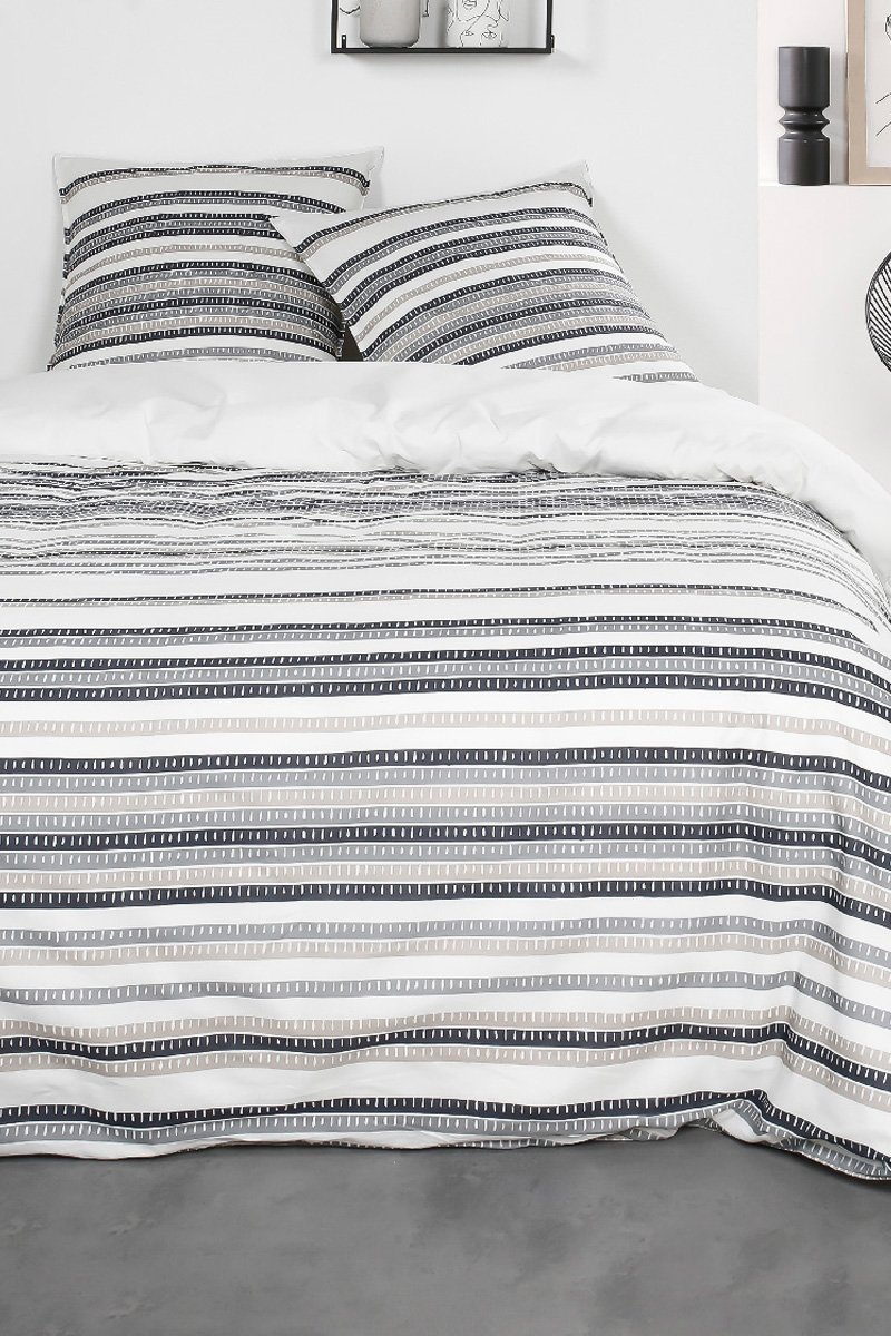 Parure de couette en coton Sunshine - Blanc et gris