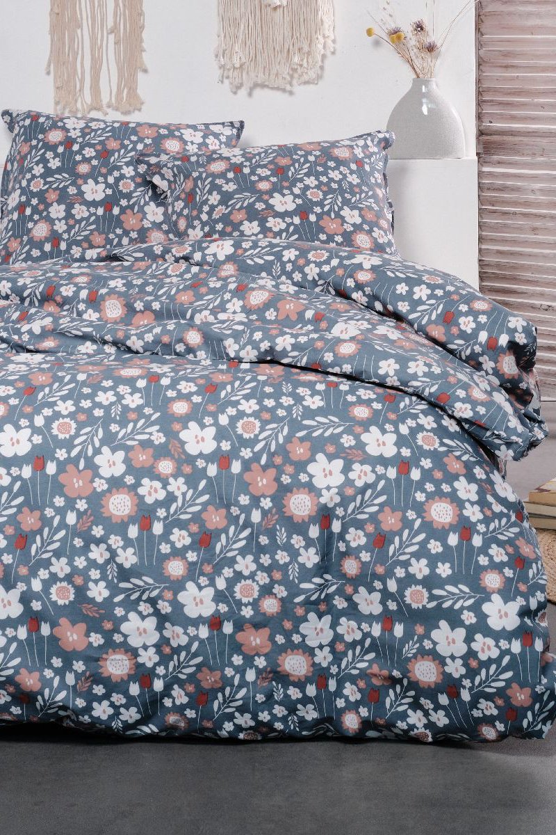 Parure de couette en coton 57 fils/cm² Sunshine - Bleu-gris et blanc
