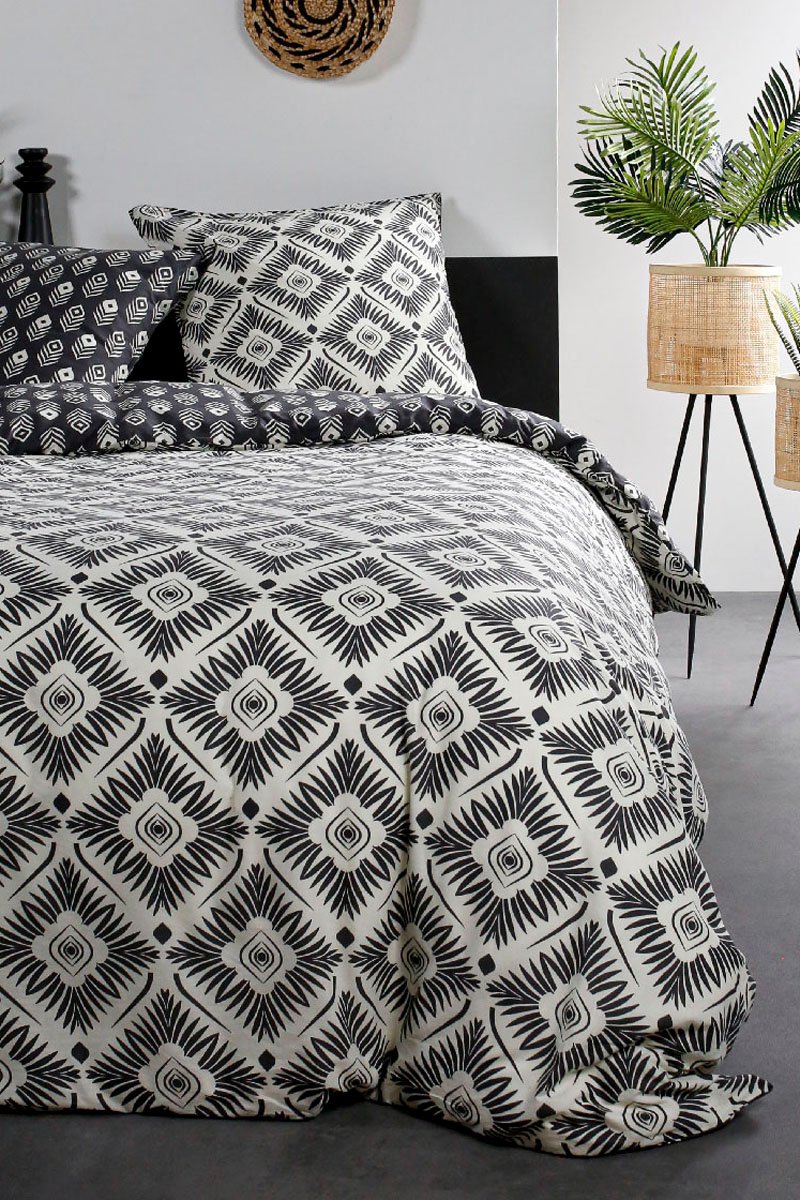Parure de couette en coton Sunshine - Ecru et noir