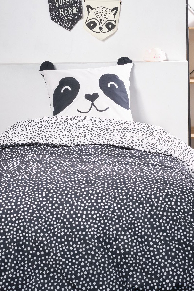 Parure de couette en coton Funny - Noir et blanc