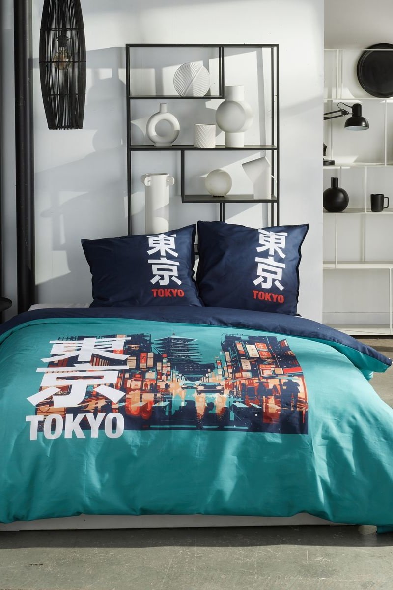 Parure de couette réversible en coton 57 fils/cm² Java - Bleu