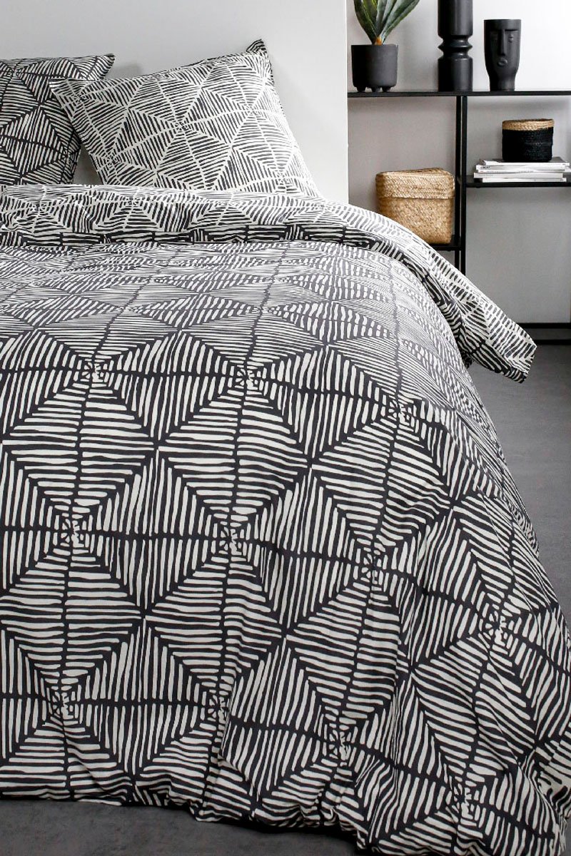 Parure de couette en coton Sunshine - Ecru et gris
