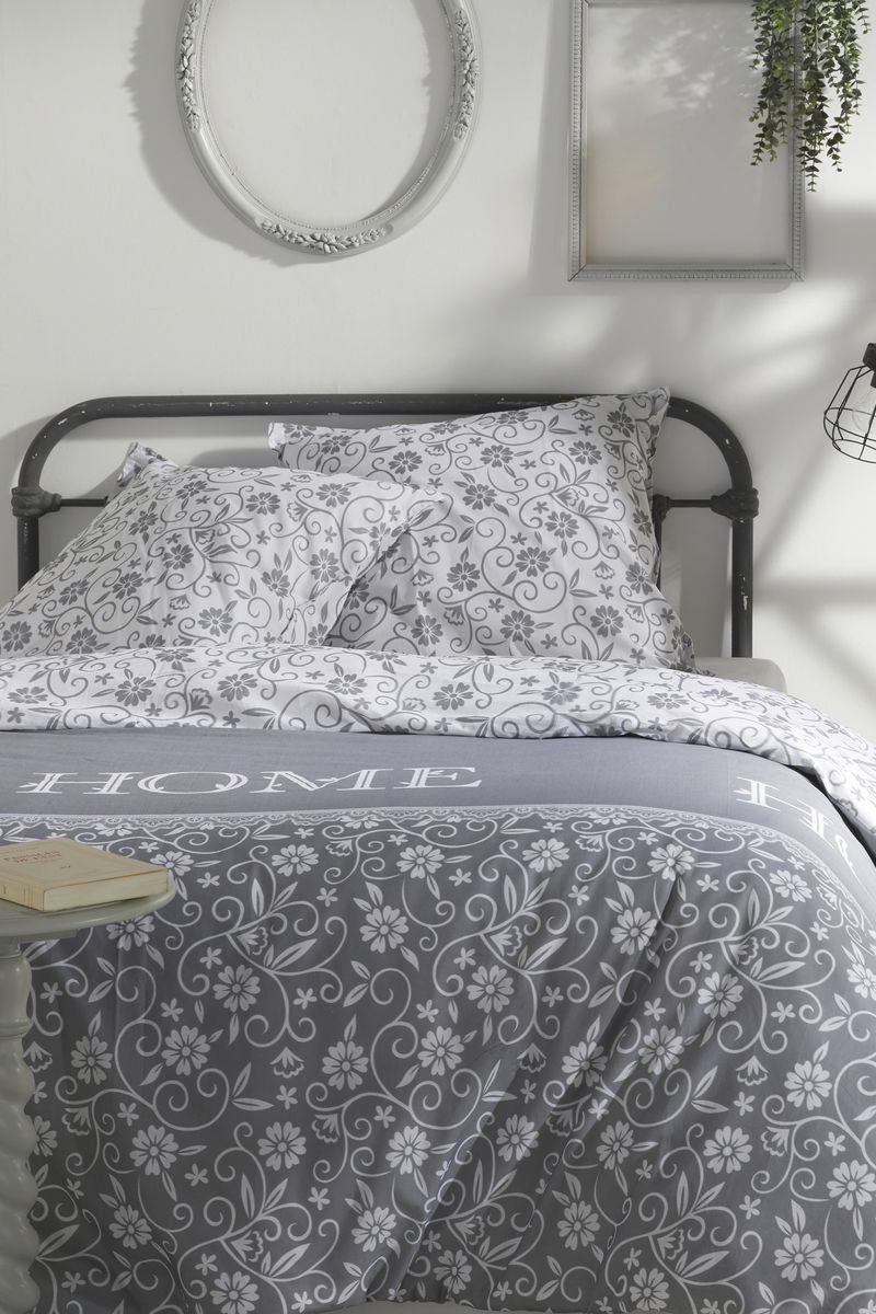 Parure de couette en coton 57 fils Charme - Gris et blanc