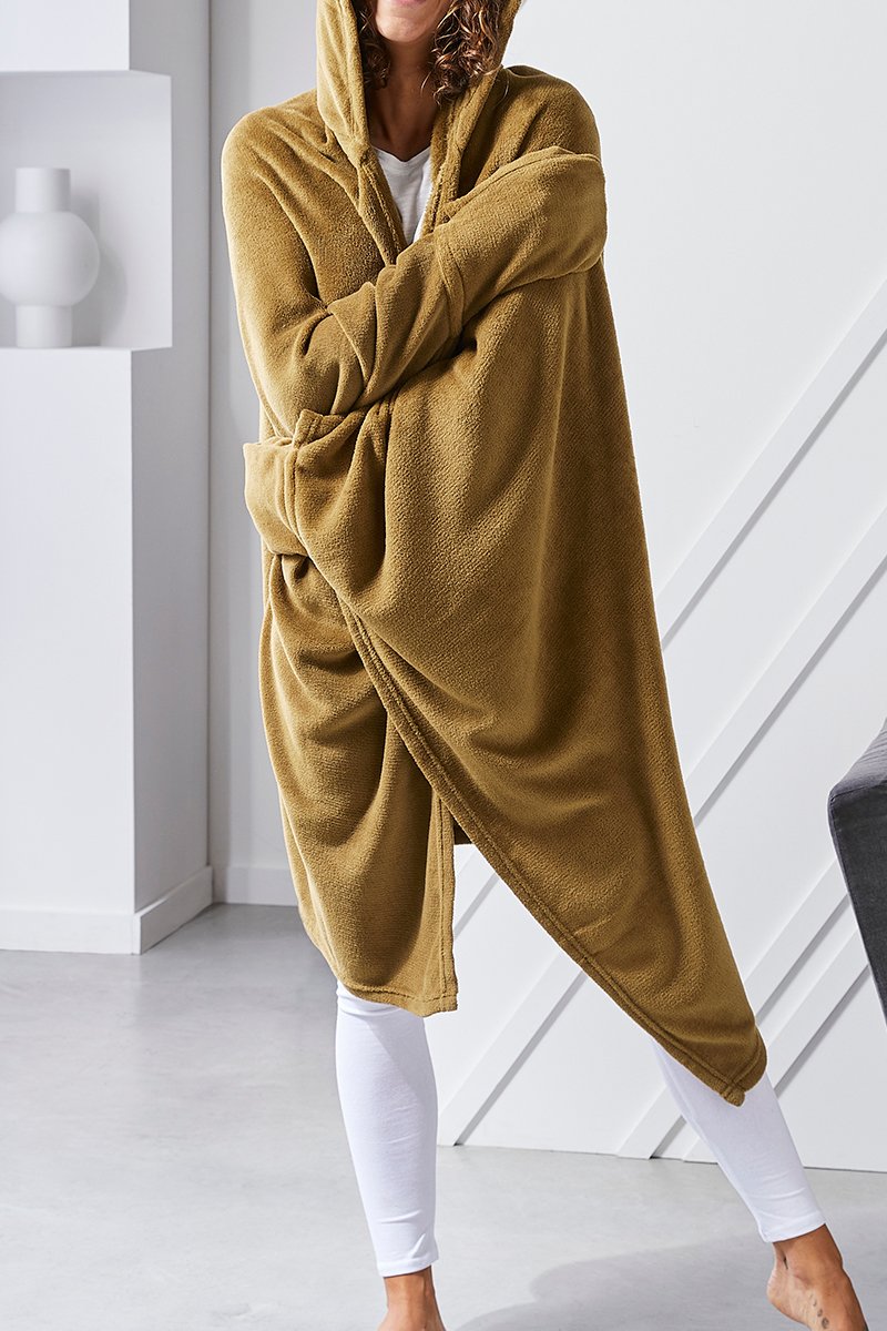 Plaid à capuche Tropik paon - Marron - 115 x 165 cm